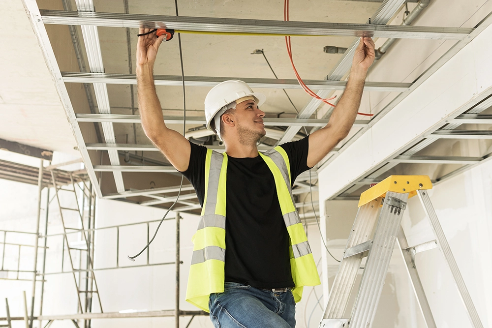 For concrete work, reinforcing steel is used to strengthen the slab or structure, ensuring it can withstand tension and movement. When a structure extends outwards with support only at one end, that is known as a cantilever – often seen in balconies, awnings, or architectural features.